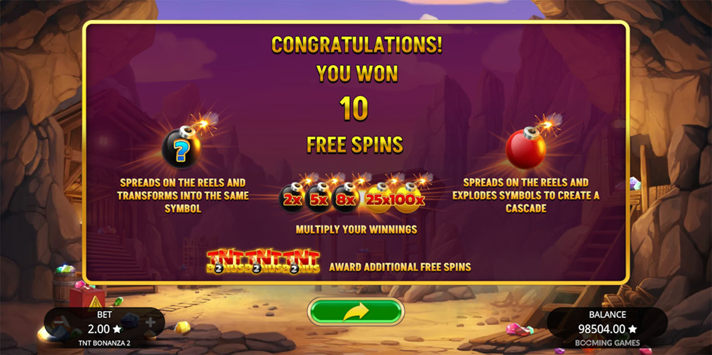 TNT Bonanza 2 builds on the success of its predecessor by combining vibrant, cartoon-style visuals with dynamic feature triggers and potentially huge rewards. Set amid stacks of TNT crates and bursting bonanza symbols, the slot delivers a fast-paced experience with lighting-fast wins and engaging bonus rounds that keep the energy high and players on edge.