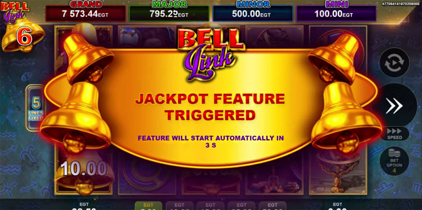 Zodiac Wheel Bell Link by EGT Digital is a visually striking Hold & Win slot that blends astrology, mysticism, and celestial symbols with the popular Bell Link mechanics. With glowing zodiac signs, cash symbols, and powerful bonus rounds, this slot is built for players who enjoy feature-driven gameplay and high win potential.