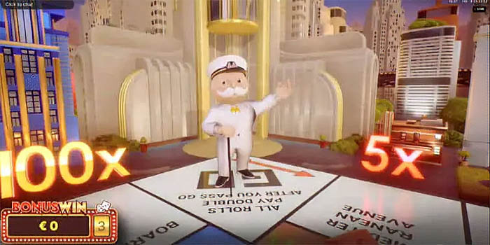 As Mr. Monopoly moves, he collects cash rewards and multipliers, stacking them until all rolls are used. With 3 rolls or 5 rolls, plus potential extra rolls from landing doubles, the bonus game can deliver impressive payouts.